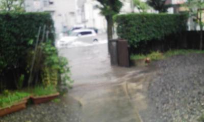 そのあとずっと雨が降り続いたせいか、道路が水浸しになってしまいました。